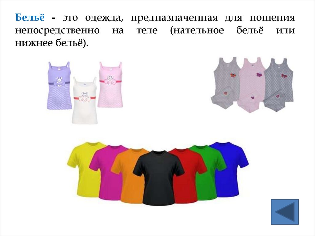 Бельё - это одежда, предназначенная для ношениянепосредственно на теле (нательное бельё или