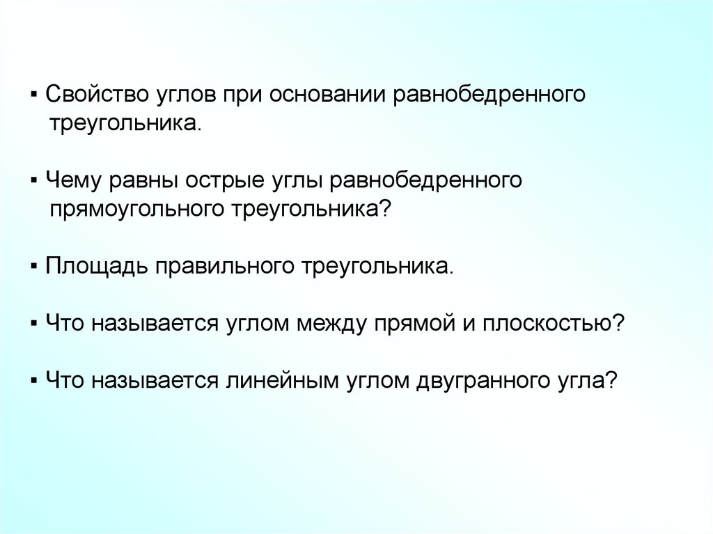 ▪ Свойство углов при основании равнобедренноготреугольника.