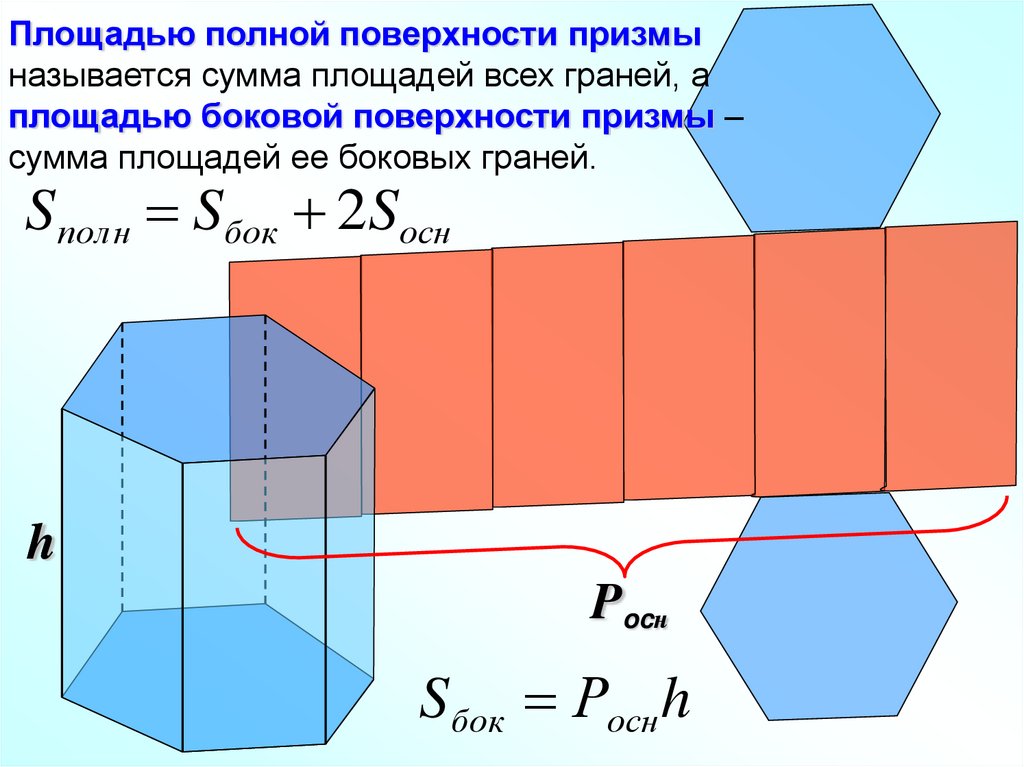 Площадью полной поверхности призмыназывается сумма площадей всех граней, а