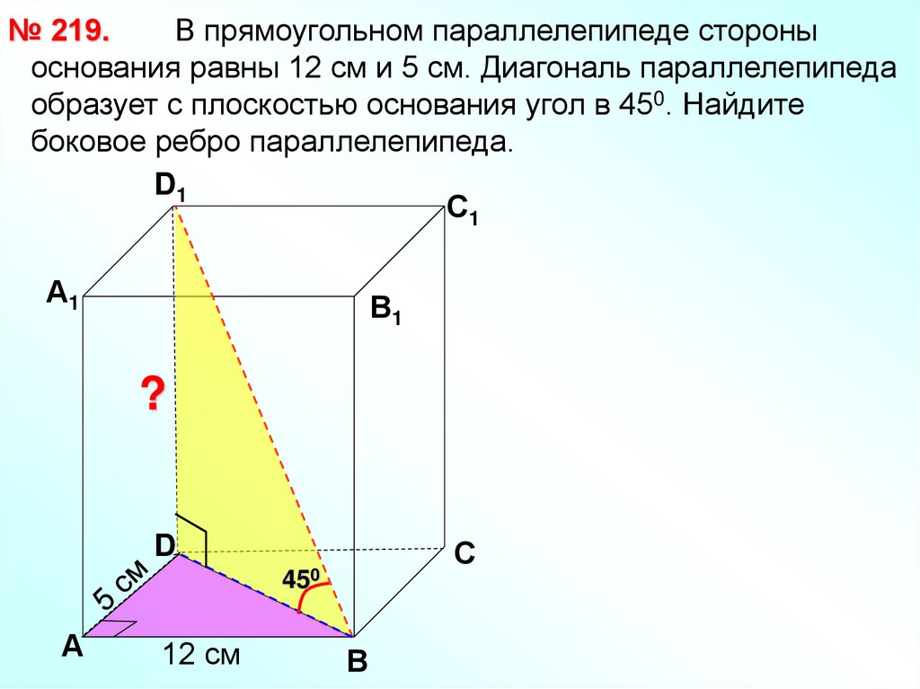№ 219.В прямоугольном параллелепипеде стороны