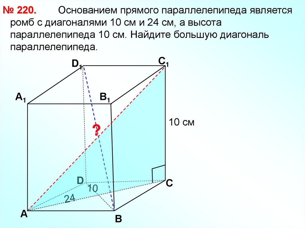 № 220.Основанием прямого параллелепипеда является