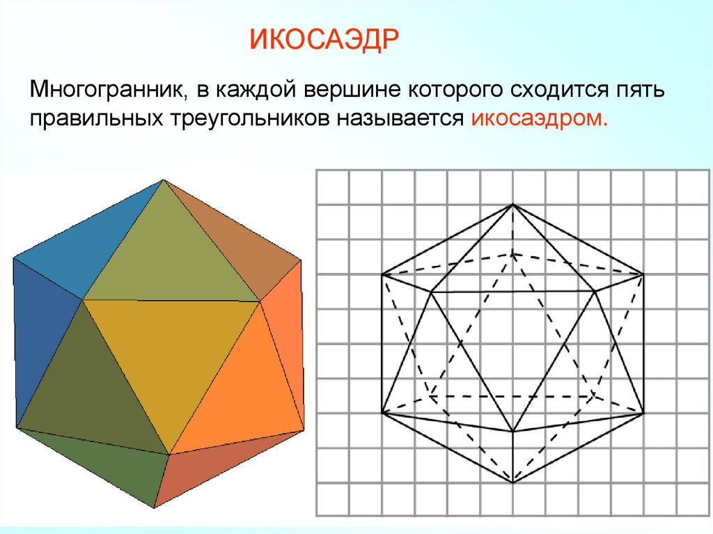 ИКОСАЭДРМногогранник, в каждой вершине которого сходится пять