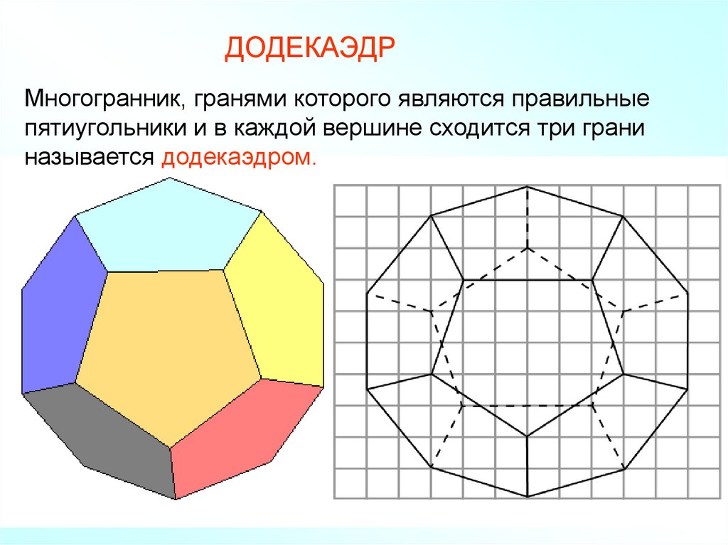 ДОДЕКАЭДРМногогранник, гранями которого являются правильные