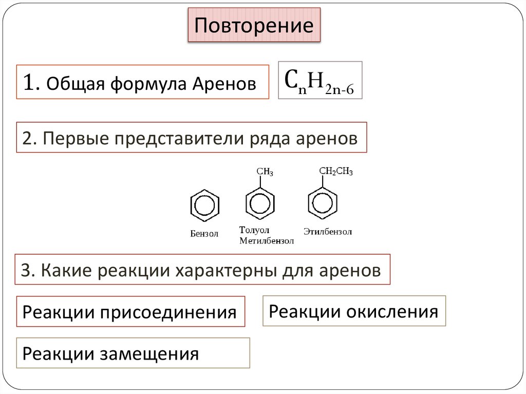 Повторение1. Общая формула Аренов