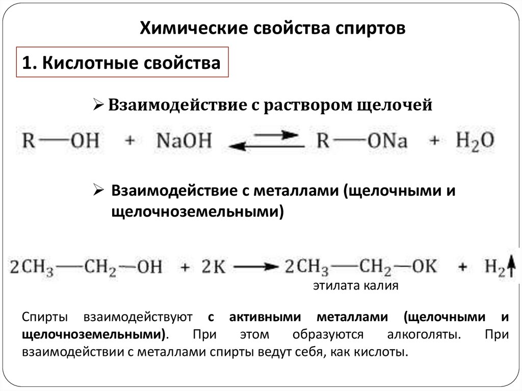 взаимодействии с металлами спирты ведут себя, как кислоты.