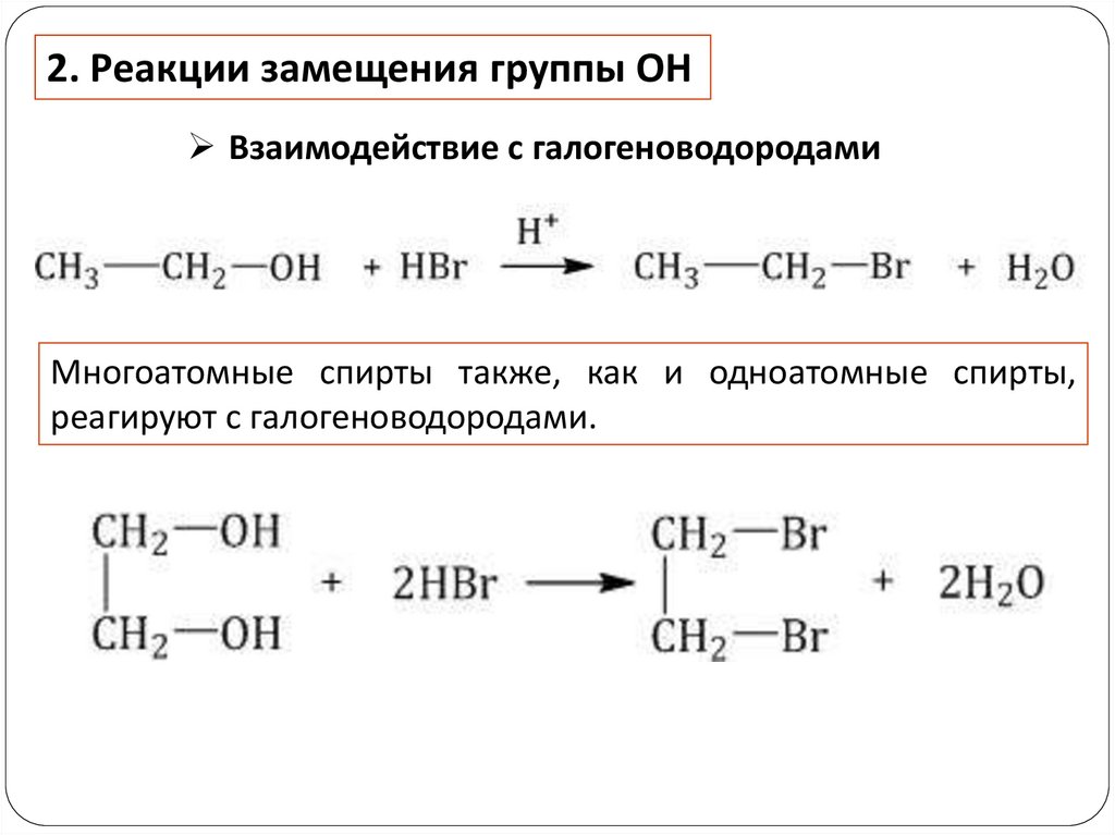 2. Реакции замещения группы ОНВзаимодействие с галогеноводородами