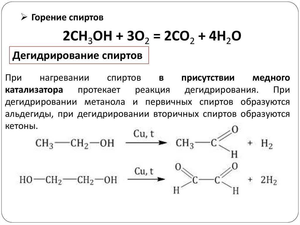 Горение спиртов2CH3OH + 3O2 = 2CO2 + 4H2O