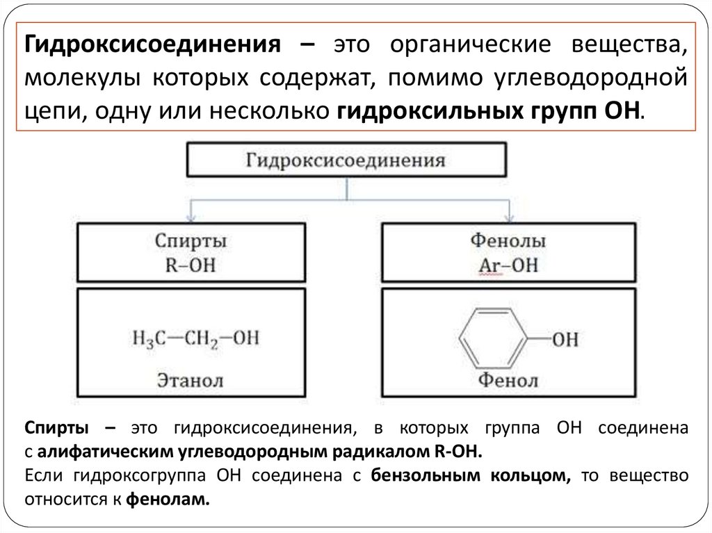 Гидроксисоединения – это органические вещества,молекулы которых содержат, помимо углеводородной