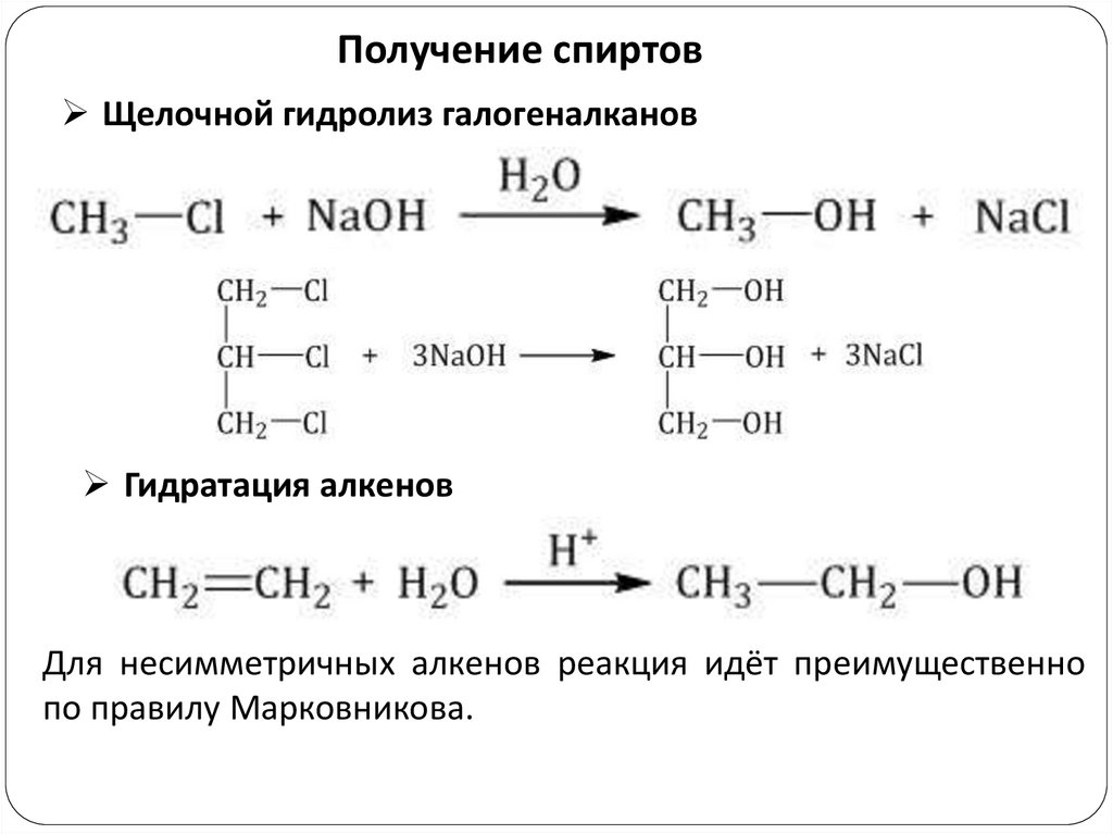 Получение спиртовЩелочной гидролиз галогеналканов
