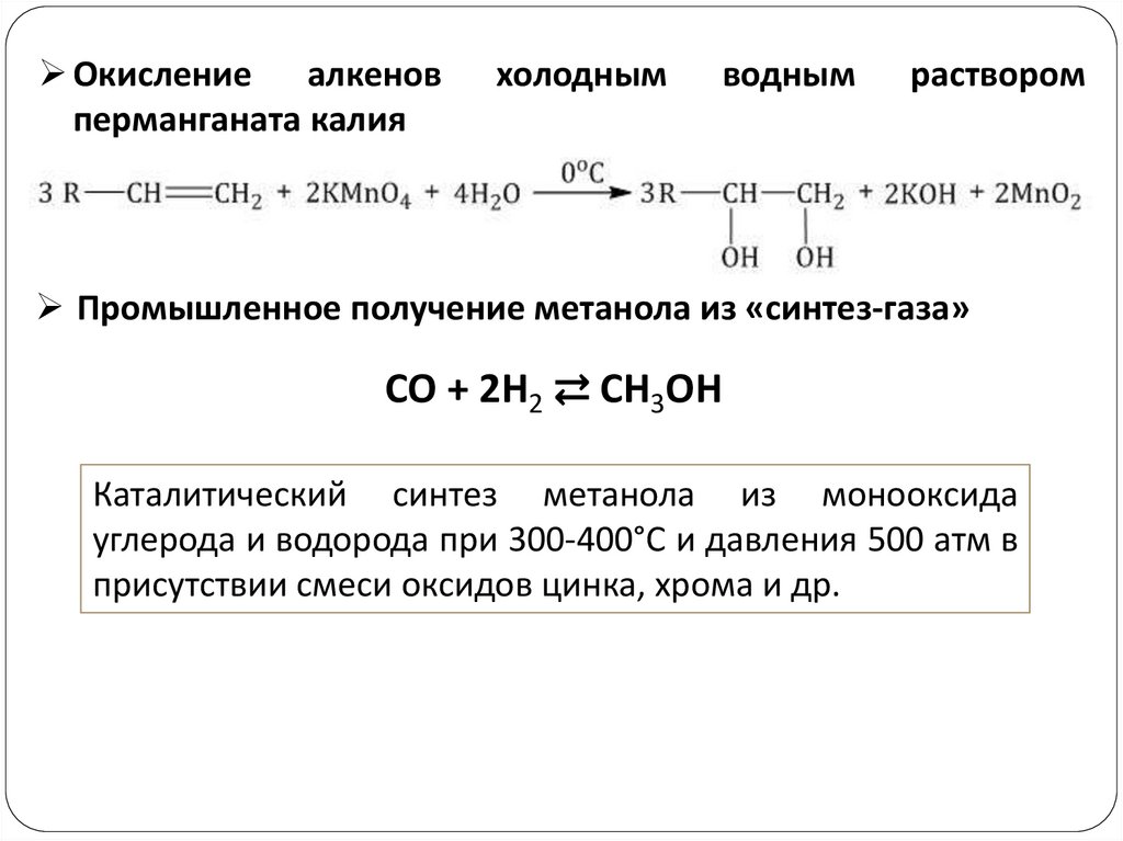 Окисление алкеновперманганата калия