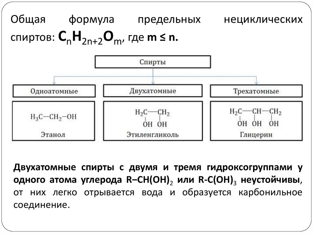 спиртов: CnH2n+2Om, где m ≤ n.