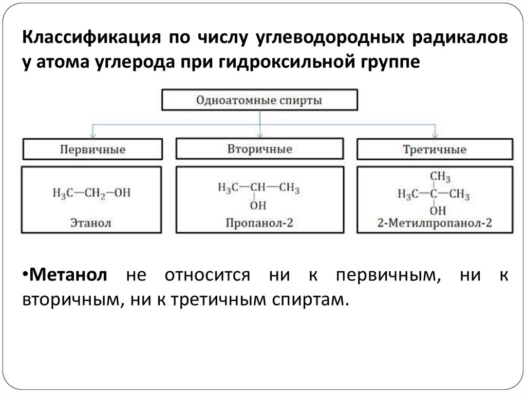Классификация по числу углеводородных радикалову атома углерода при гидроксильной группе