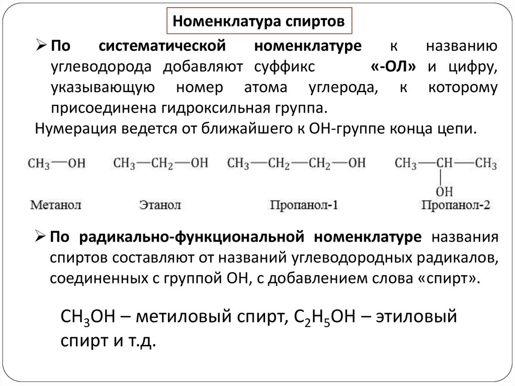 соединенных с группой ОН, с добавлением слова «спирт».