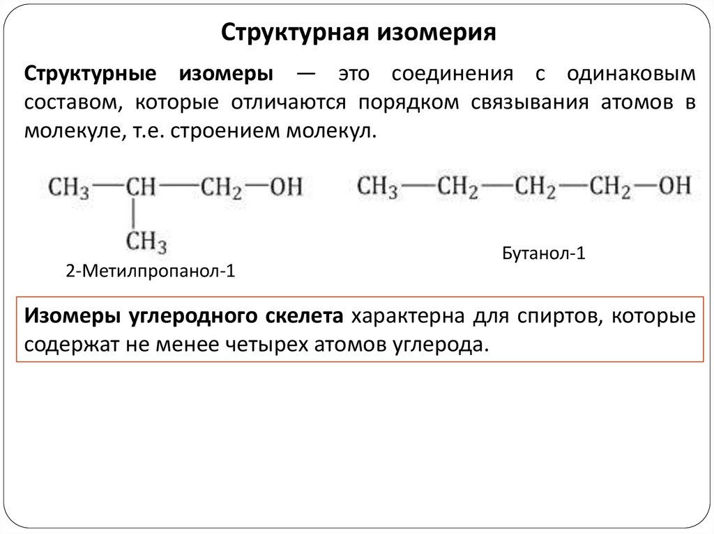 Изомеры углеродного скелета характерна для спиртов, которые