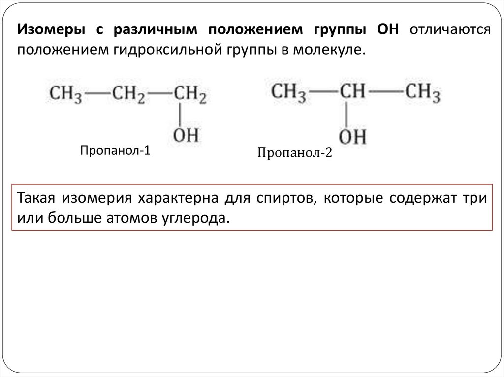 Изомеры с различным положением группы ОН отличаютсяположением гидроксильной группы в молекуле.