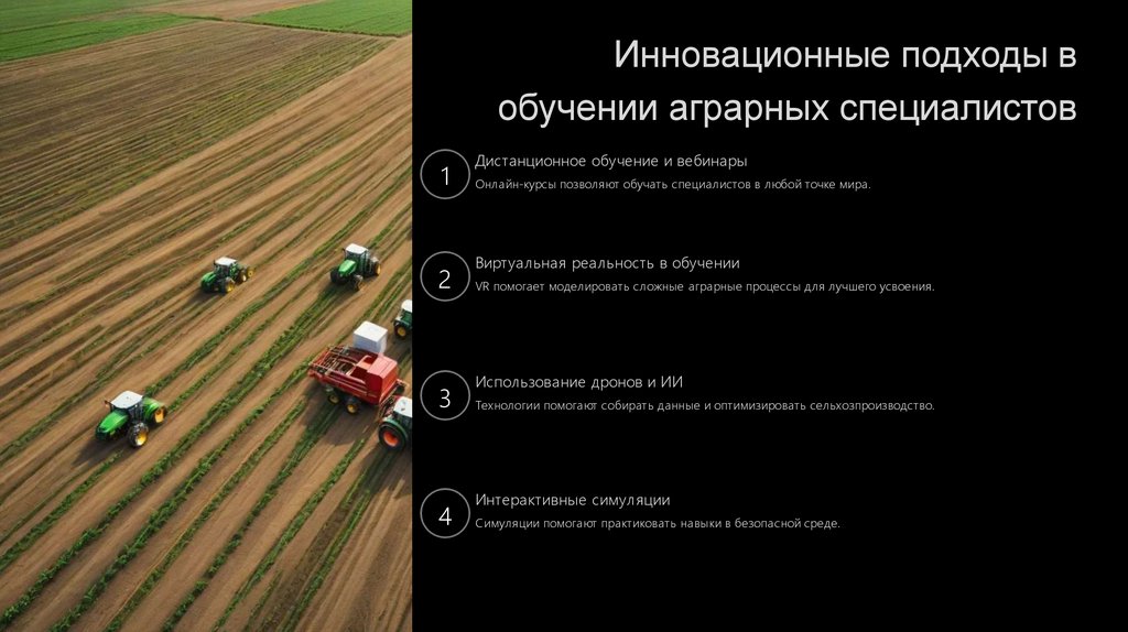 VR помогает моделировать сложные аграрные процессы для лучшего усвоения.