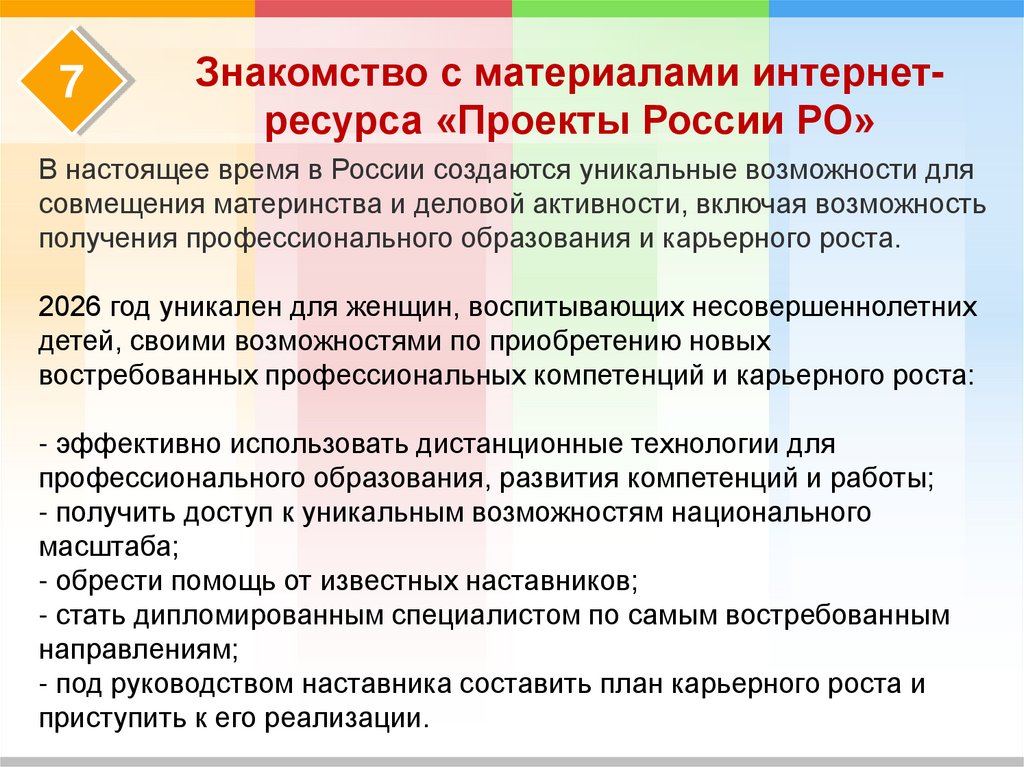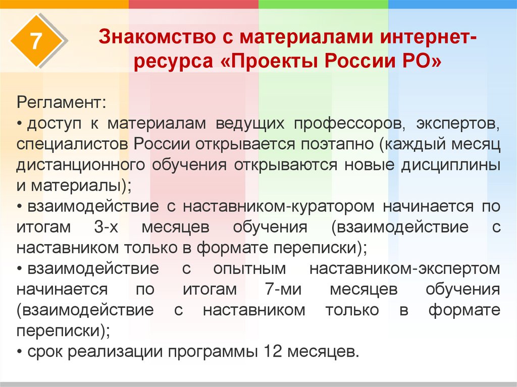 7Знакомство с материалами интернетресурса «Проекты России РО»