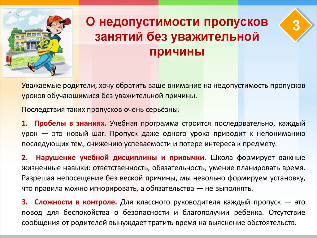 Уважаемые родители, хочу обратить ваше внимание на недопустимость пропусков