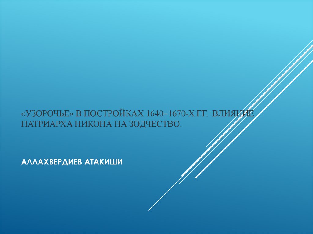1. «Узорочье» в постройках 1640–1670-х гг. Влияние патриарха Никона на зодчество. Аллахвердиев Атакиши