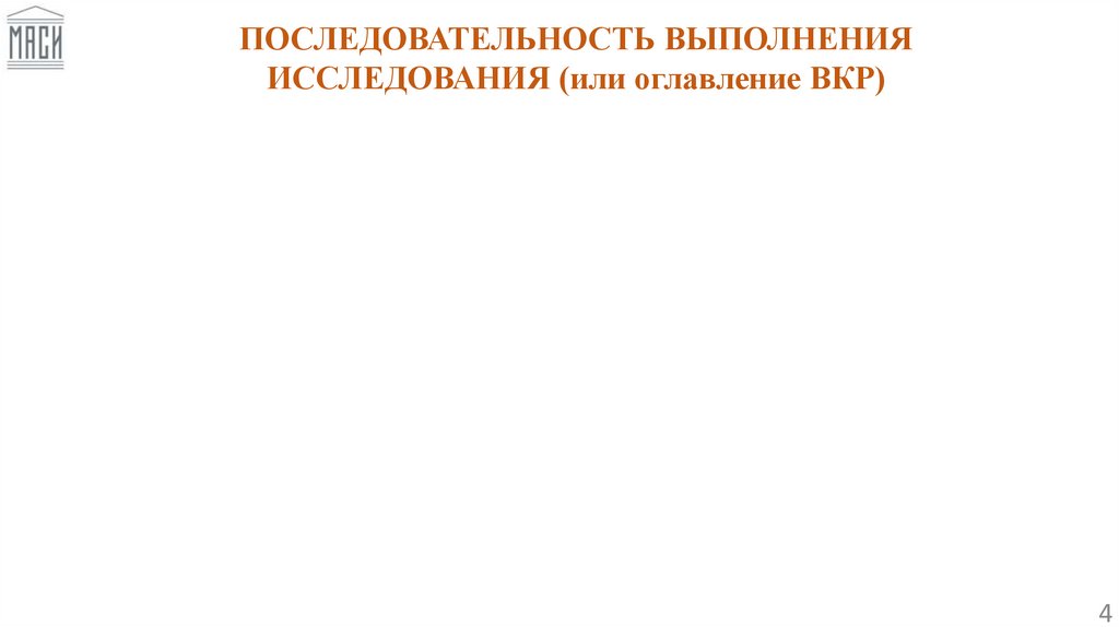 ПОСЛЕДОВАТЕЛЬНОСТЬ ВЫПОЛНЕНИЯИССЛЕДОВАНИЯ (или оглавление ВКР)