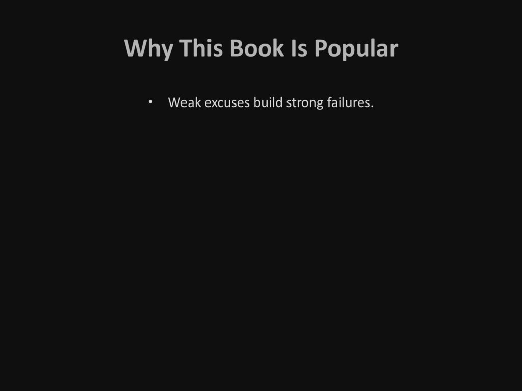 Why This Book Is Popular• Weak excuses build strong failures.