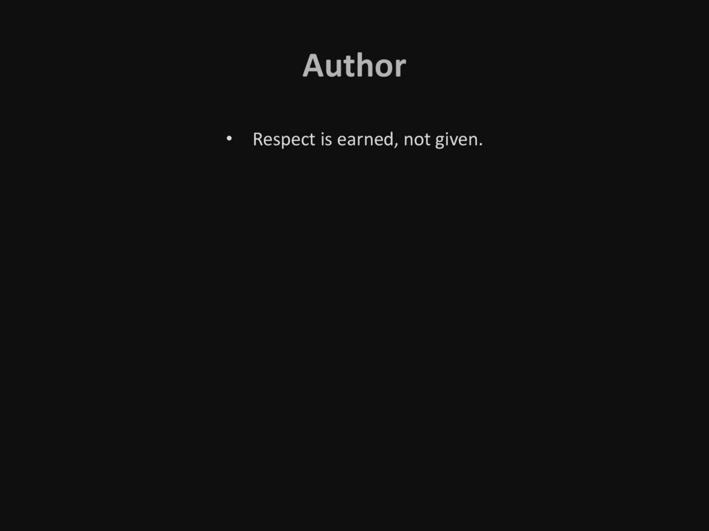 Author• Respect is earned, not given.