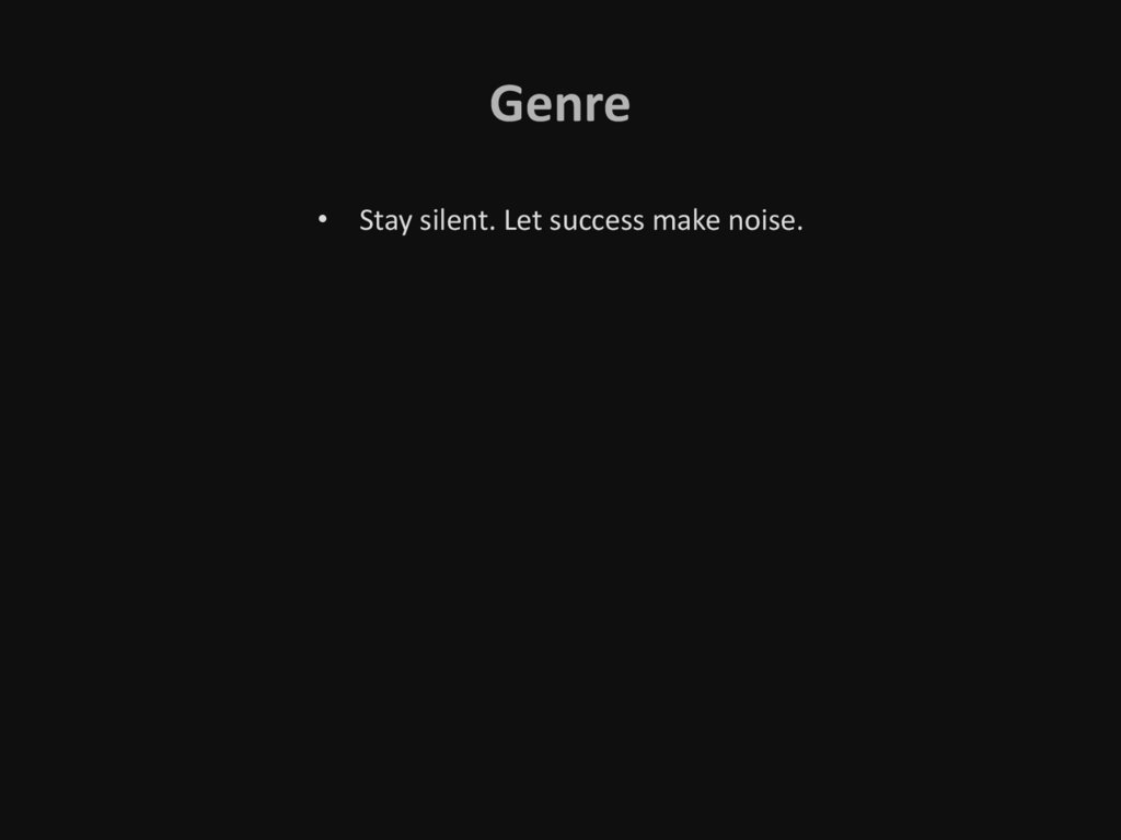 Genre• Stay silent. Let success make noise.