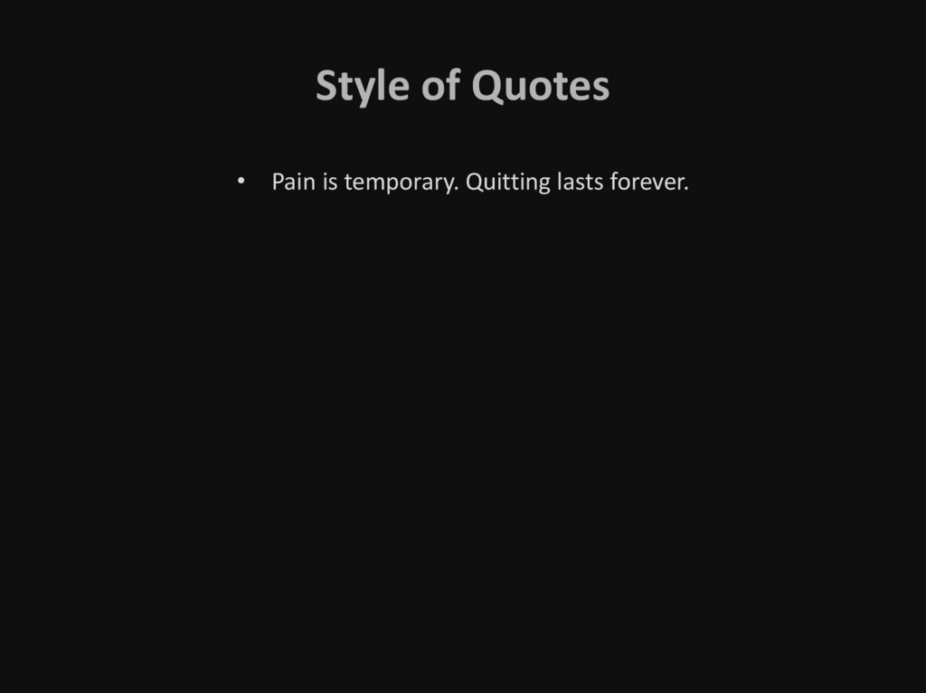 Style of Quotes• Pain is temporary. Quitting lasts forever.