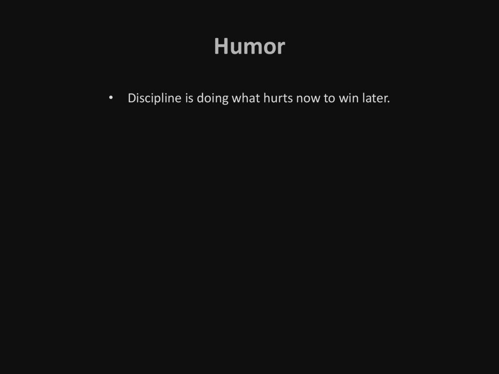 Humor• Discipline is doing what hurts now to win later.