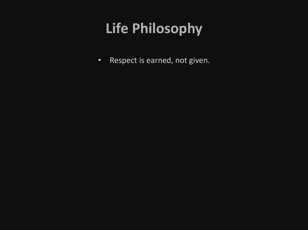 Life Philosophy• Respect is earned, not given.