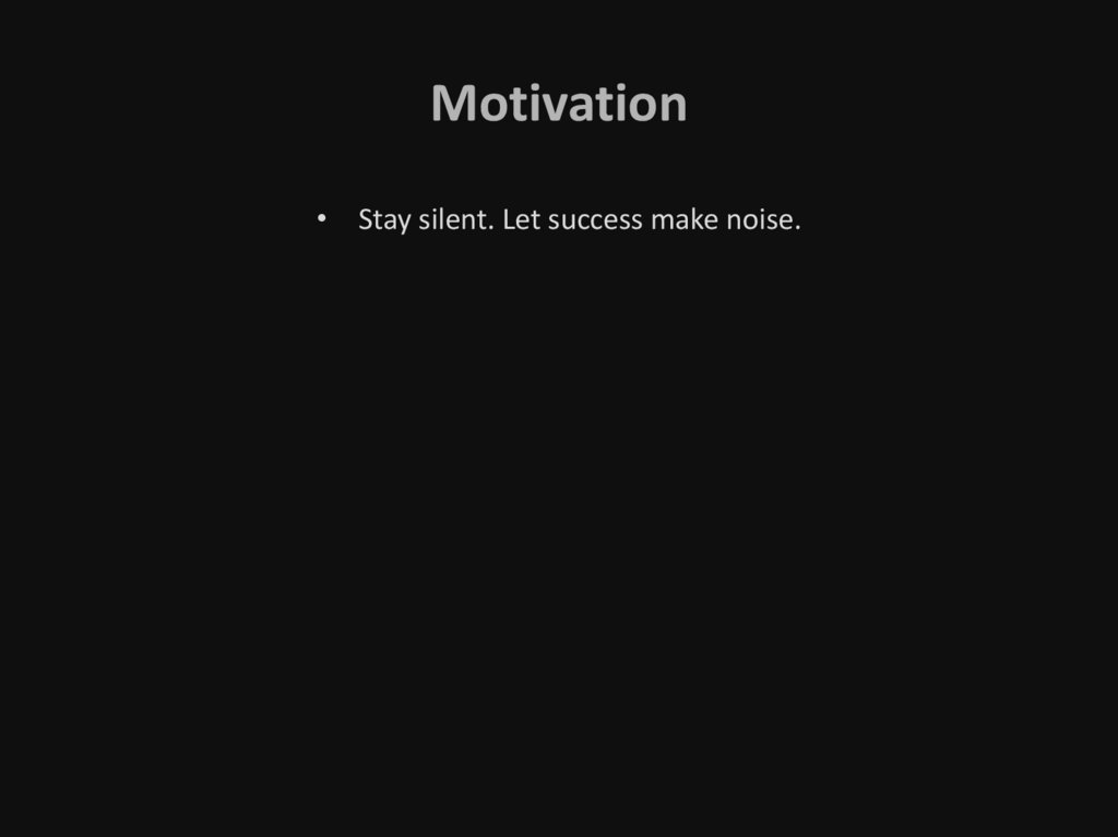 Motivation• Stay silent. Let success make noise.