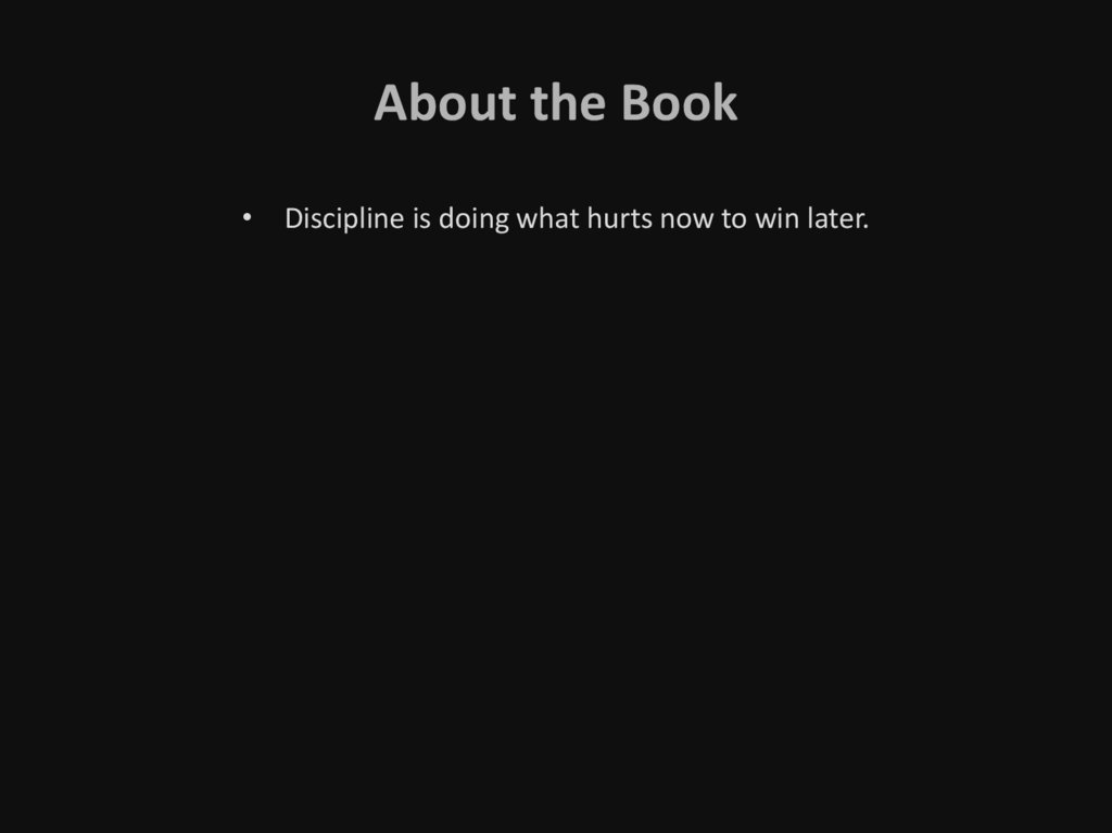 About the Book• Discipline is doing what hurts now to win later.