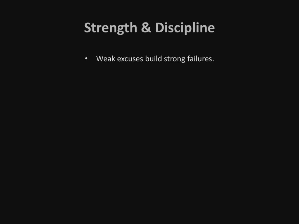 Strength & Discipline• Weak excuses build strong failures.