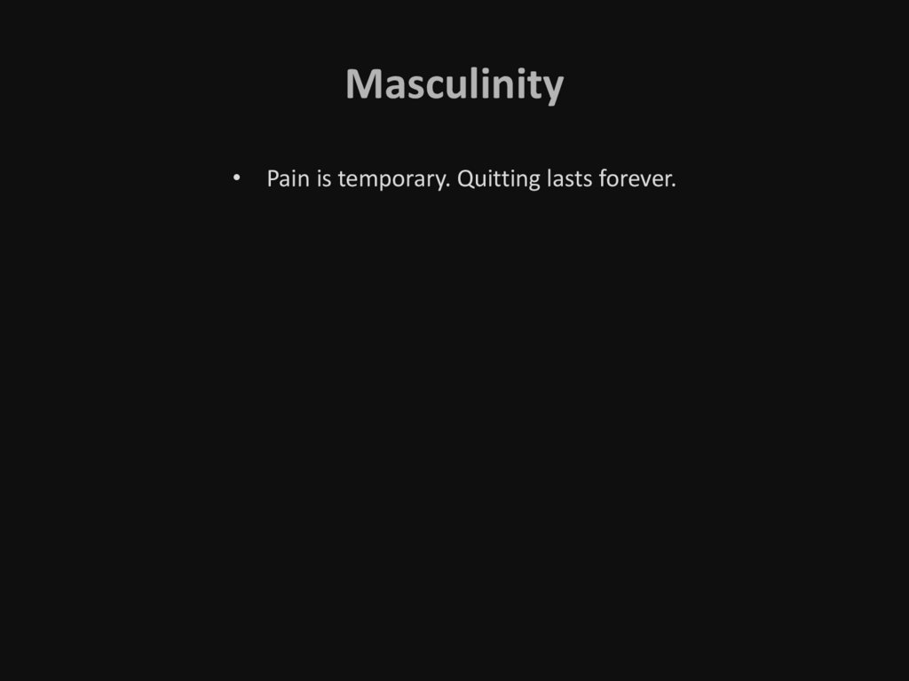 Masculinity• Pain is temporary. Quitting lasts forever.