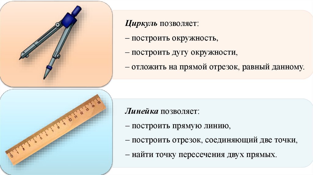 Циркуль позволяет:– построить окружность,