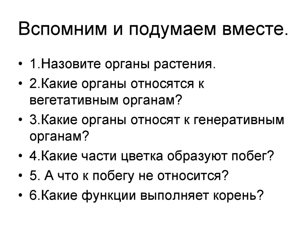 • 1.Назовите органы растения.• 2.Какие органы относятся к