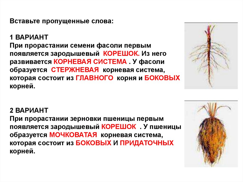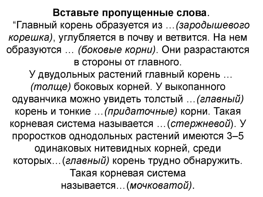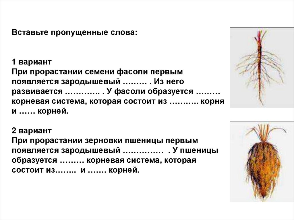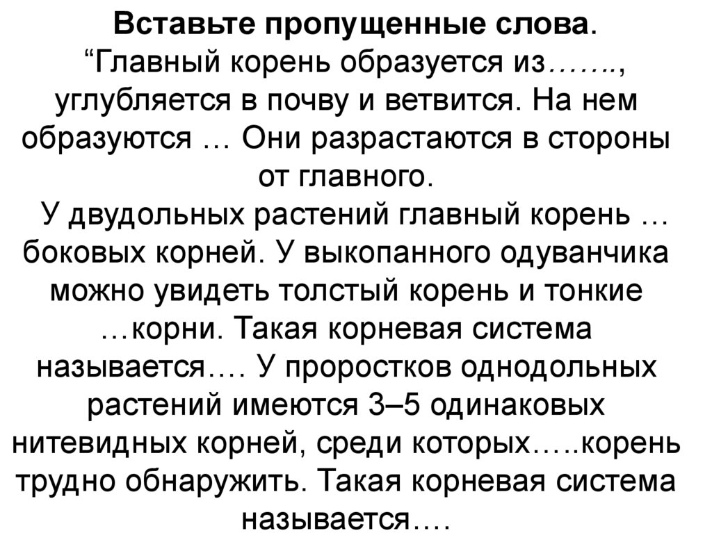 Вставьте пропущенные слова.“Главный корень образуется из …(зародышевого