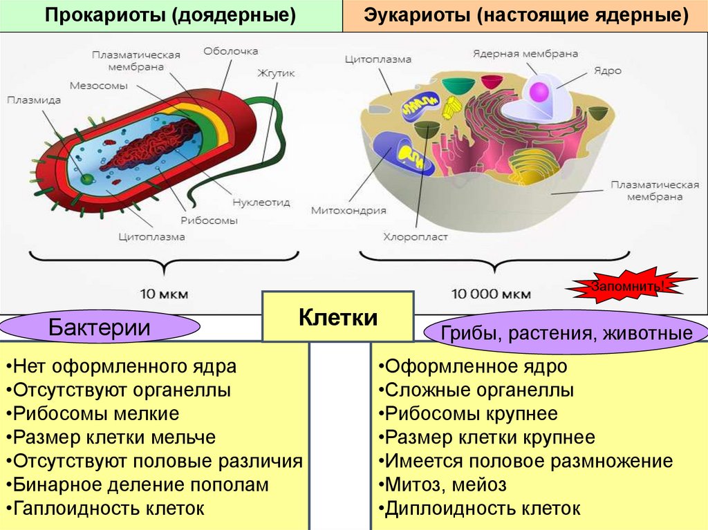 Прокариоты (доядерные)Эукариоты (настоящие ядерные)