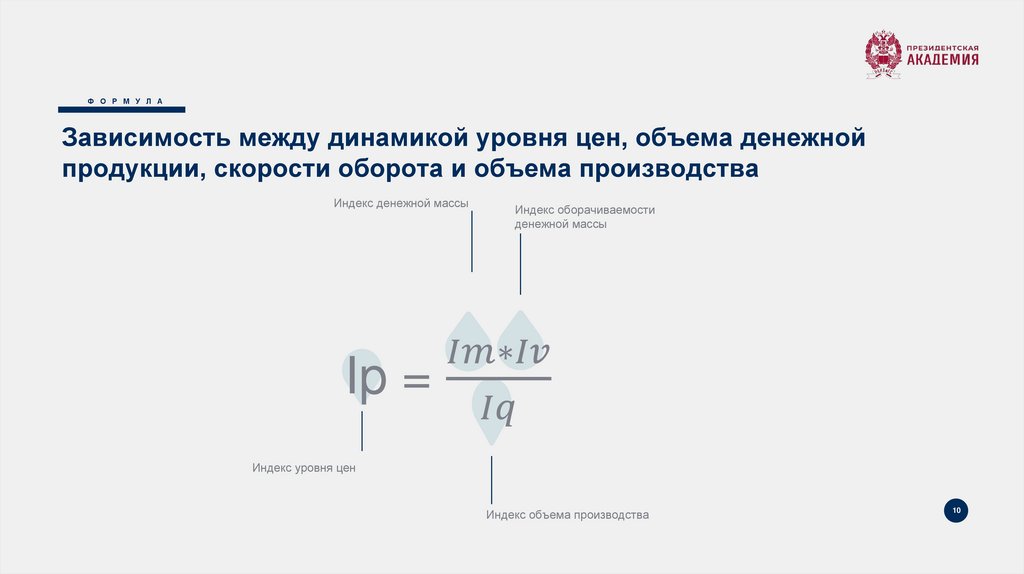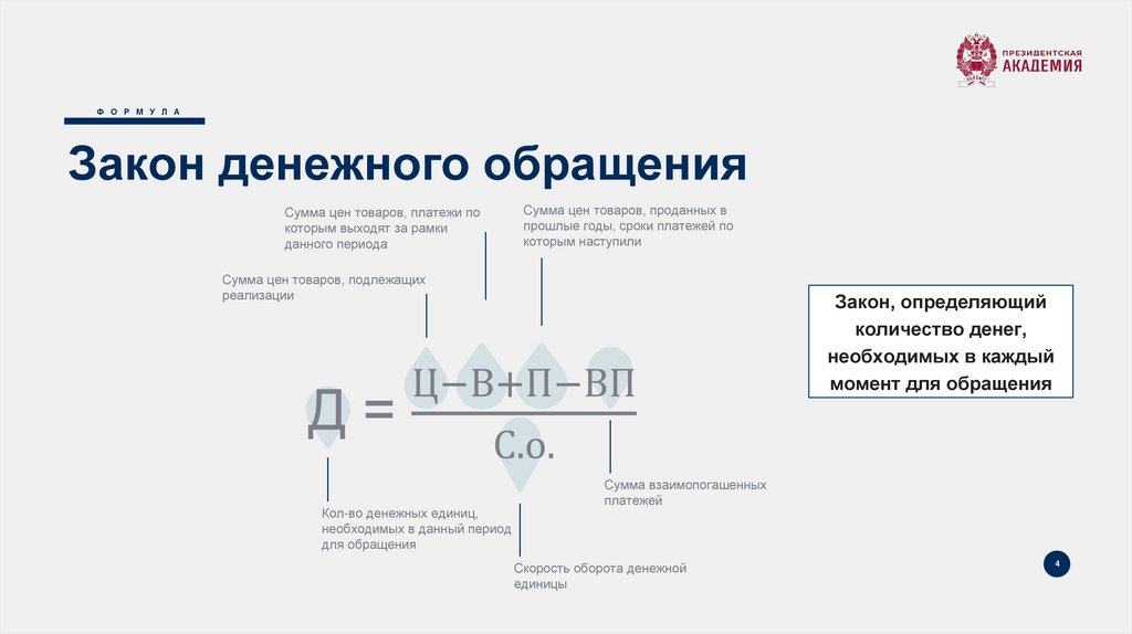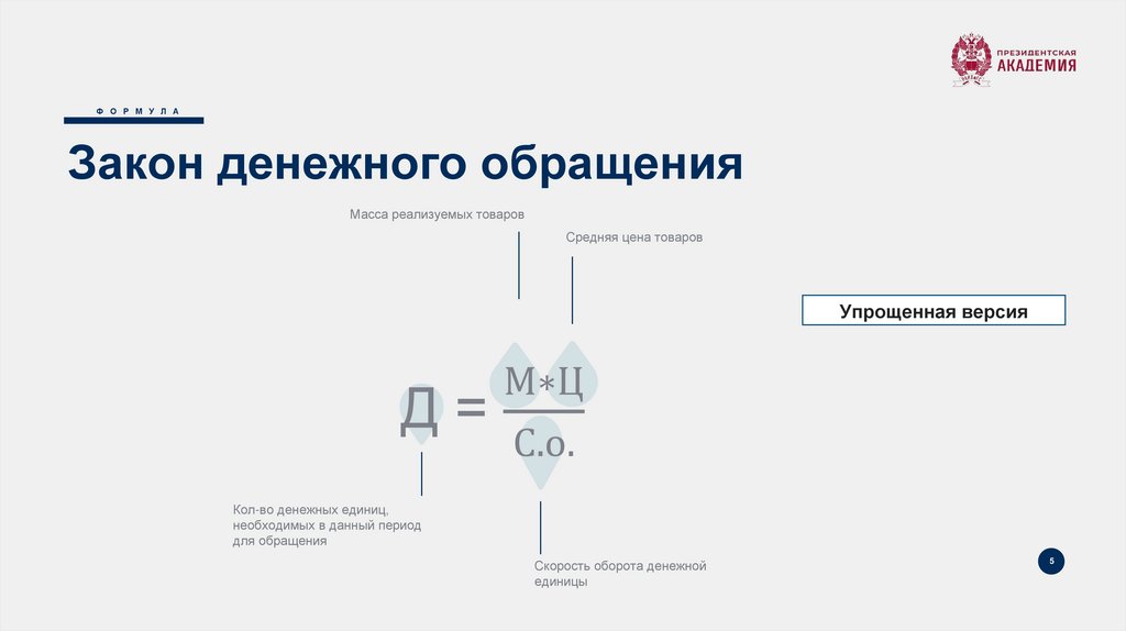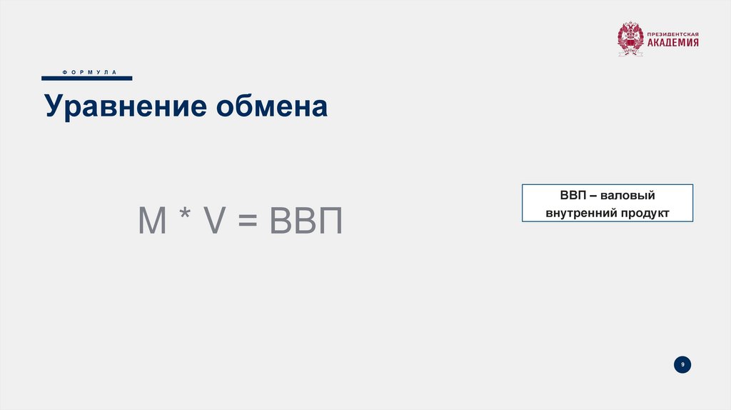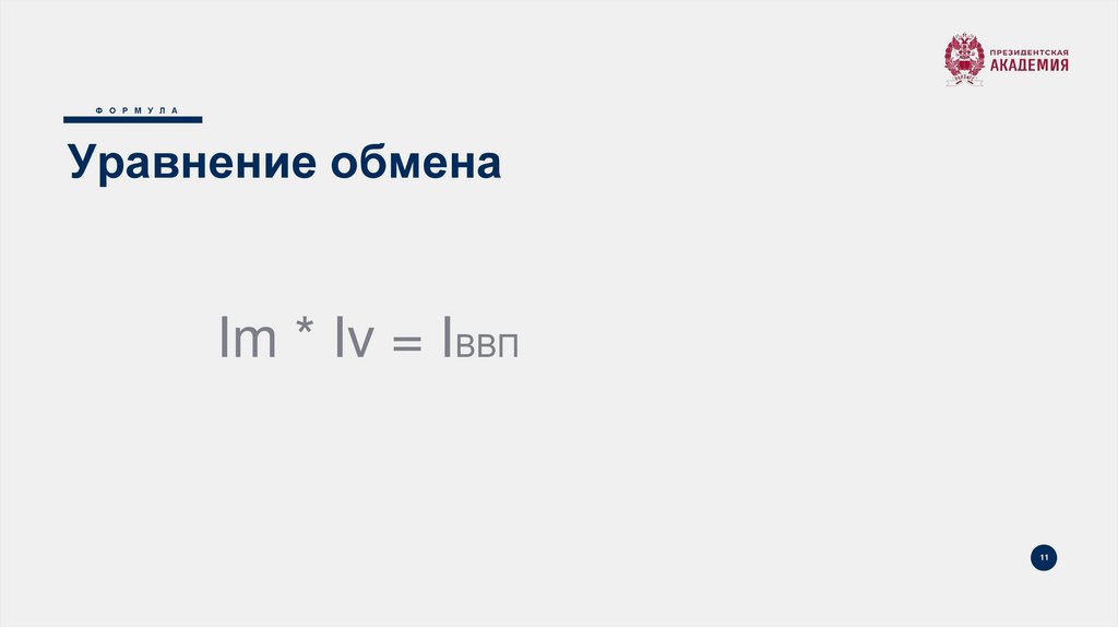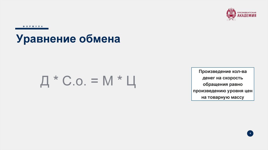 Ф О Р М У Л АУравнение обмена (в условиях кризиса)