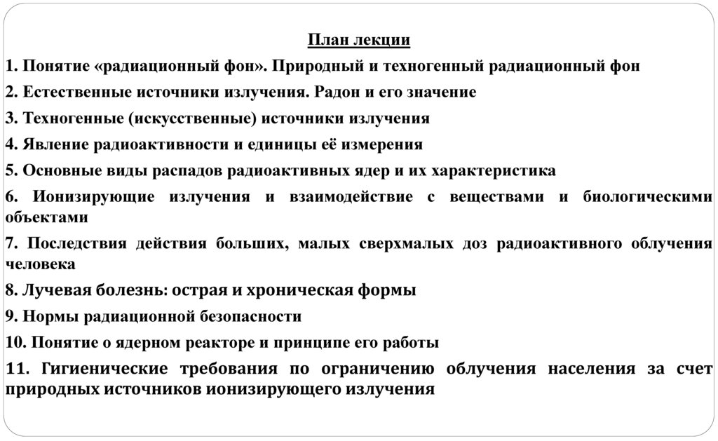 План лекции1. Понятие «радиационный фон». Природный и техногенный радиационный фон