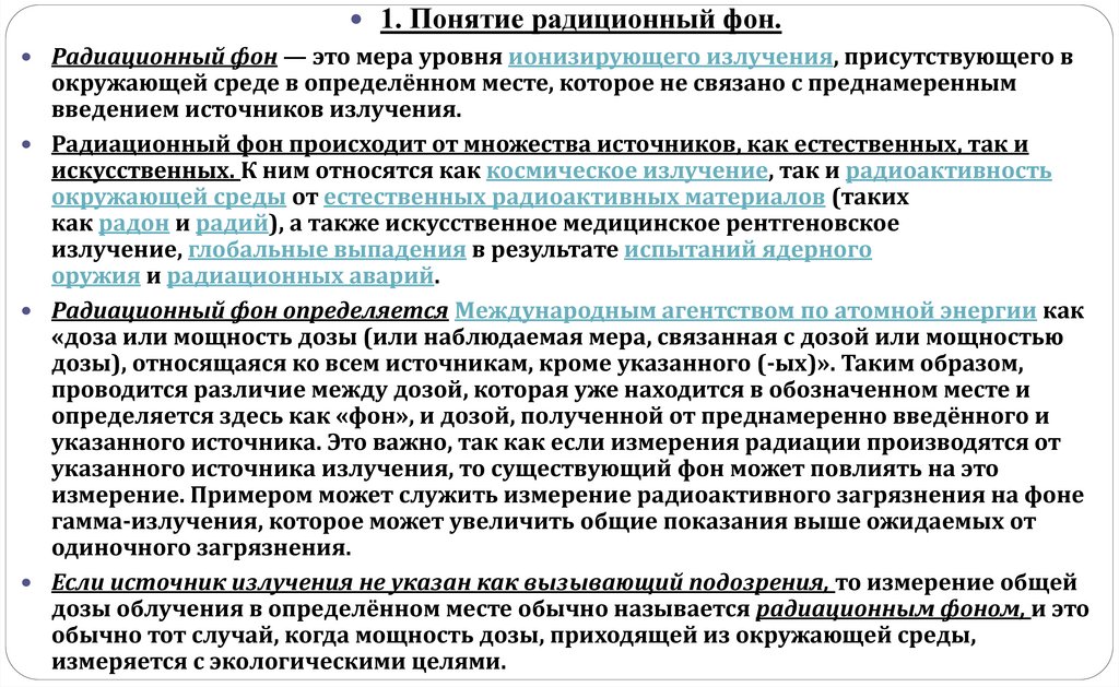 Радиационный фон определяется Международным агентством по атомной энергии как
