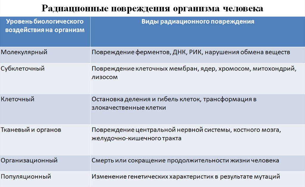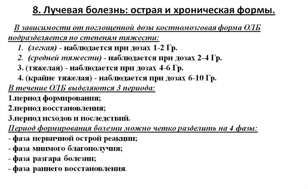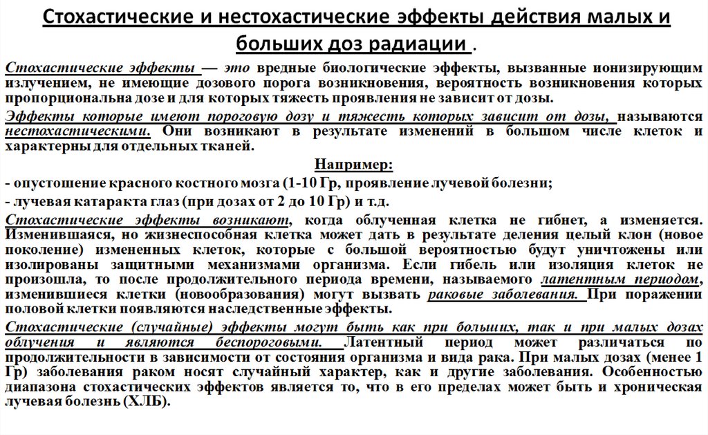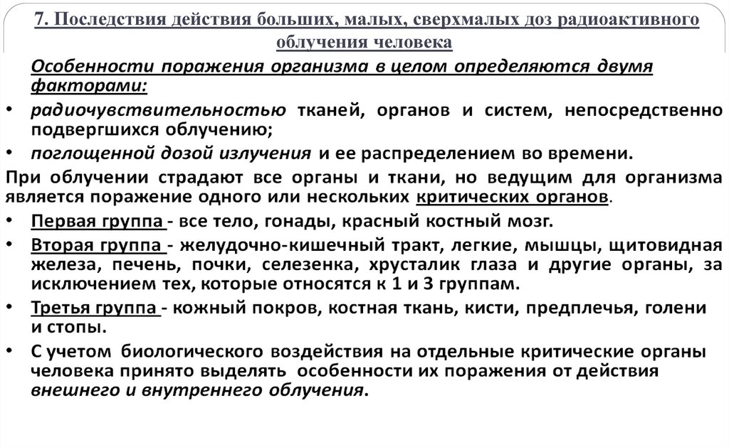 7. Последствия действия больших, малых сверхмалых доз радиоактивного облучения