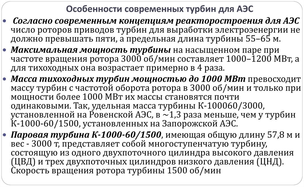 Особенности современных турбин для АЭССогласно современным концепциям реакторостроения для АЭС