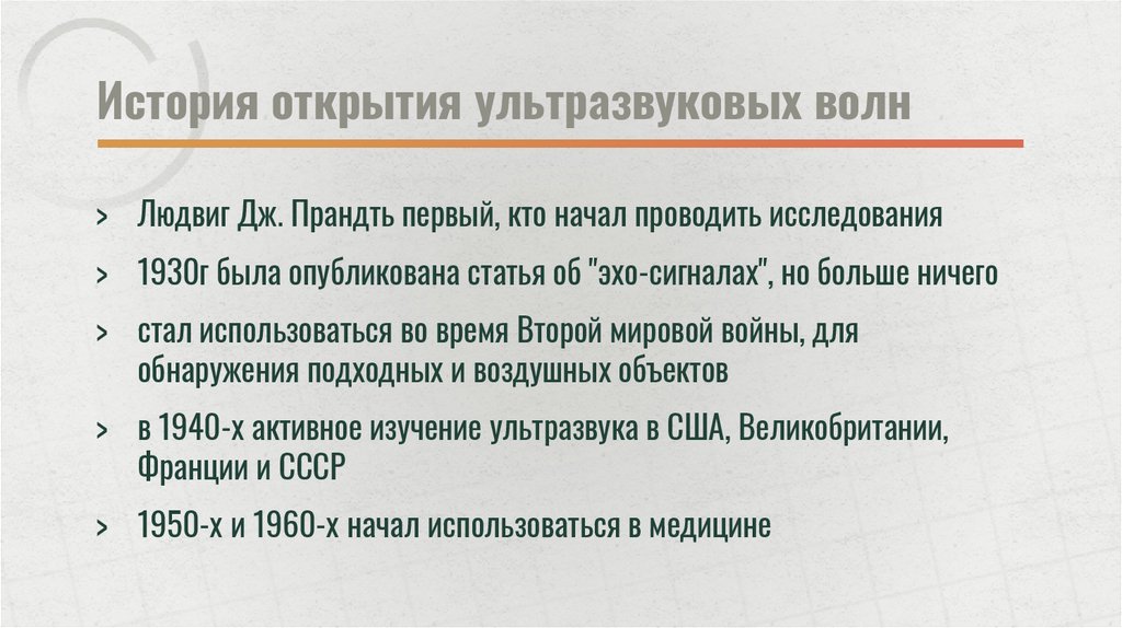 История открытия ультразвуковых волн> Людвиг Дж. Прандть первый, кто начал проводить исследования