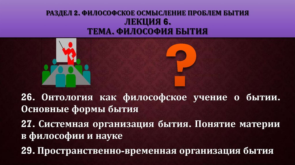 1. РАЗДЕЛ 2. ФИЛОСОФСКОЕ ОСМЫСЛЕНИЕ ПРОБЛЕМ БЫТИЯ ЛЕКЦИЯ 6. ТЕМА. ФИЛОСОФИЯ БЫТИЯ