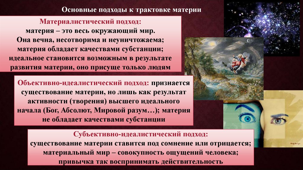 Основные подходы к трактовке материиМатериалистический подход: