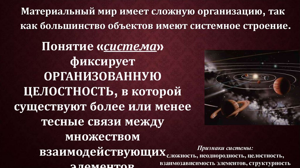 27. Системная организация бытия. Понятие материи