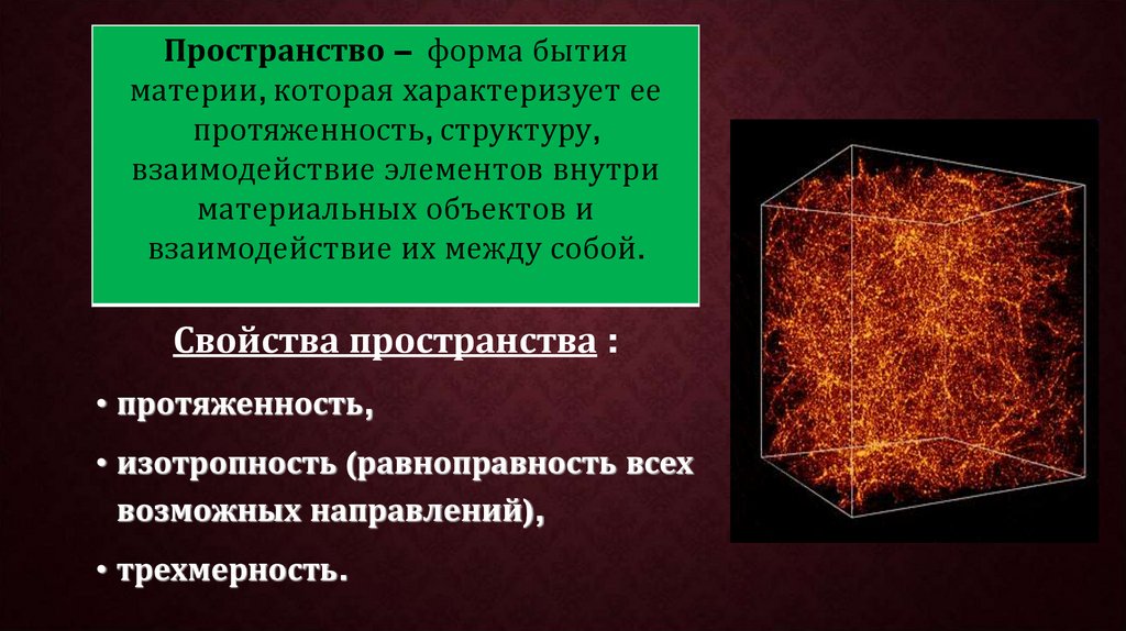 Пространство – форма бытияматерии, которая характеризует ее
