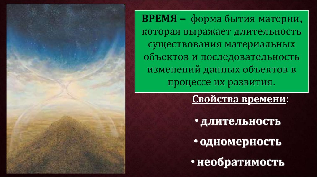 ВРЕМЯ – форма бытия материи,которая выражает длительность