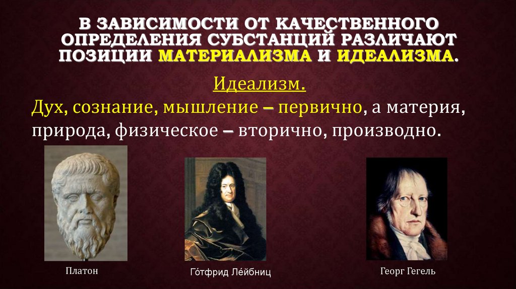 ПОЗИЦИИ МАТЕРИАЛИЗМА И ИДЕАЛИЗМА.